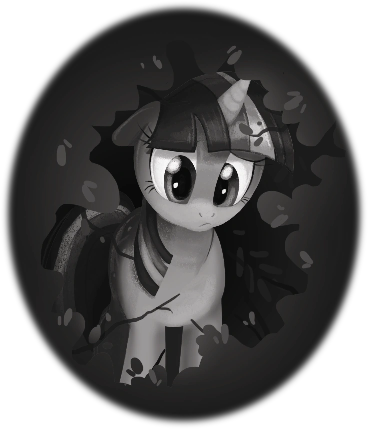 Eventually, Twilight discovers her though briefly takes on an angry tone after looking into Nyx's eyes which frightens the filly. Attempting to flee but remaining trapped in the bush, Nyx eventually calms down when Twilight promises not to hurt her. Freed from her entanglements, the filly leans against Twilight for comfort from the lightning and walks to Ponyville with her, falling asleep on the way.