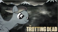 Rainbow Dash surrounded by zombie ponies.
