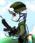 Rainbow Dash appear as an armed pony in F. O. B. Equestria.