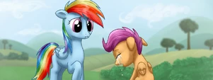 Middle: Rainbow Dash and her adopted little sister, Scootaloo
