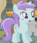 Tootsie Flute is the fan name for a filly used as a background pony in My Little Pony Friendship is Magic. The Collectable Card Game gave her the name 'Liza Doolots' but it is little used by fans. Within the fandom, she is primarily known as the daughter of Bon Bon and Lyra, either adopted outright or brought into the family via magical means (as in the story And Tootsie Flute Makes Three by dlazerous).